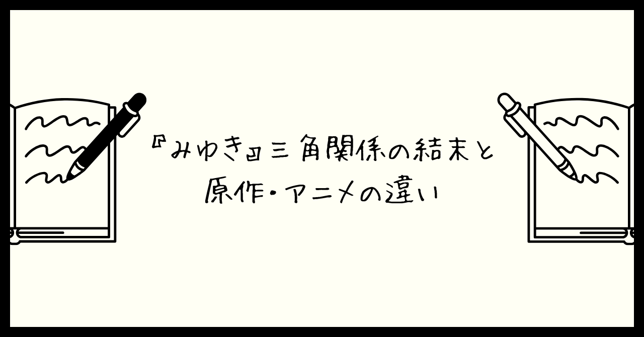 このように、『みゆき』はアニメと原作でラストが大きく異なり、三角関係の結末もそれぞれの媒体で異なる余韻を残しています15。