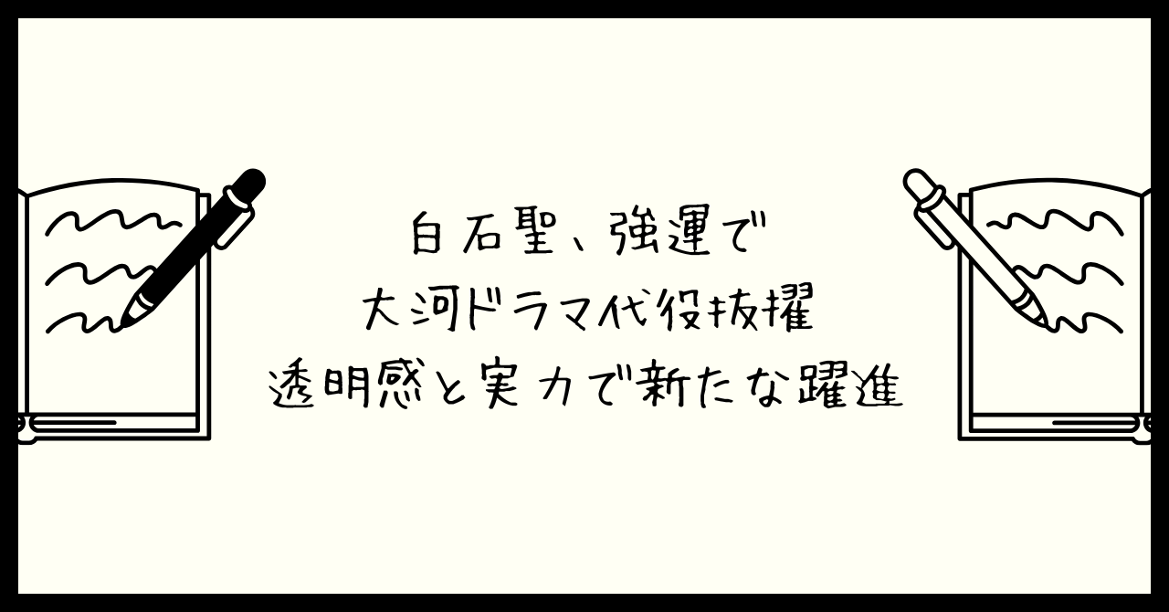 今回の大河出演は、白石聖にとって大きな飛躍のチャンスとなるだろう。透明感と実力、そして運を味方に、今後の活躍に期待が高まる。